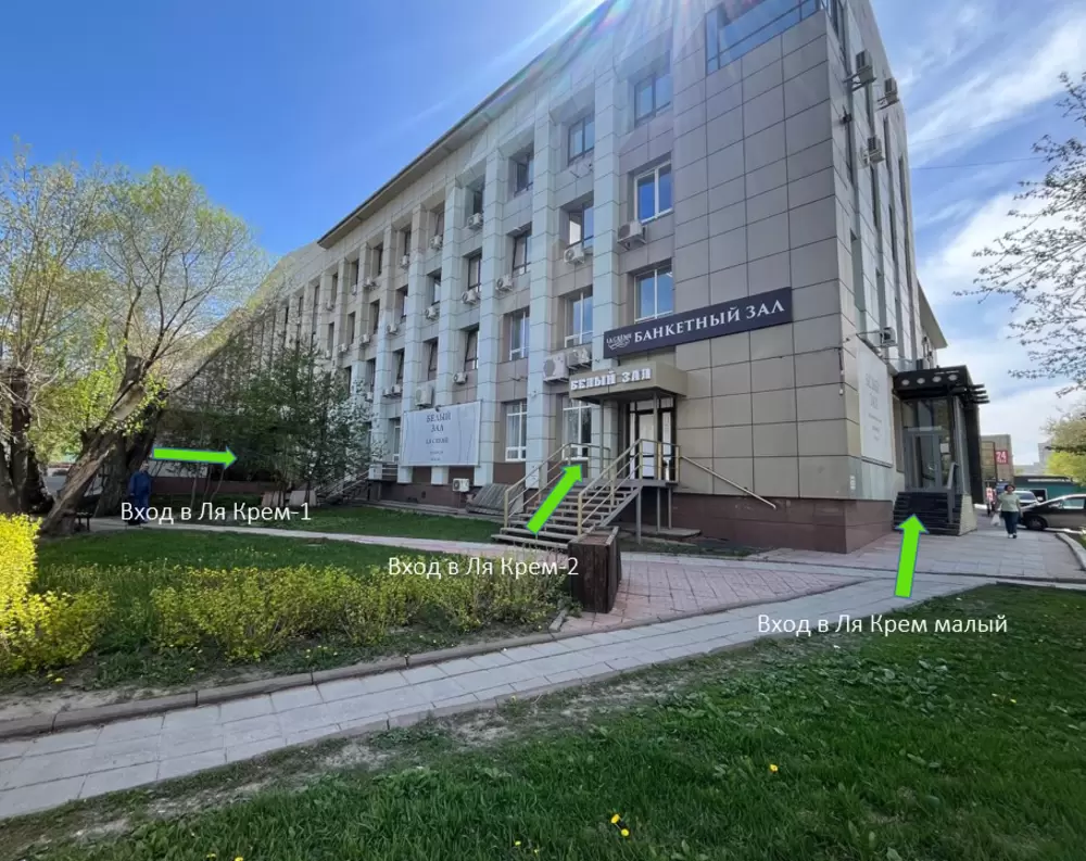 2 зал "La Crème-2" - если вы стоите лицом к центральному входу в Сибирский зональный НИПИ с правой стороны на краю здания.